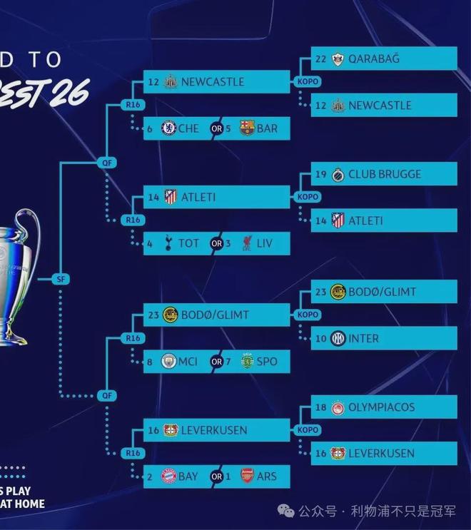 北京时间今天凌晨,通过附加赛晋级16强的8个名额已经有4个揭晓,随着马竞总比分7-4(3-3、4-1)淘汰布鲁日,利物浦在16进8的潜在对手,已经从4个减少为3个——马竞、加拉塔萨雷和尤文。