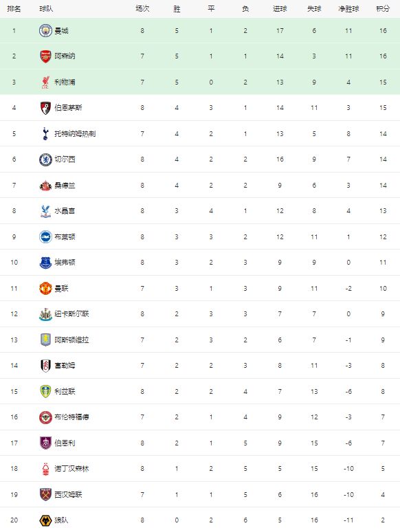 随着曼城2-0埃弗顿,切尔西3-0,英超最新积分榜:阿森纳让出榜首